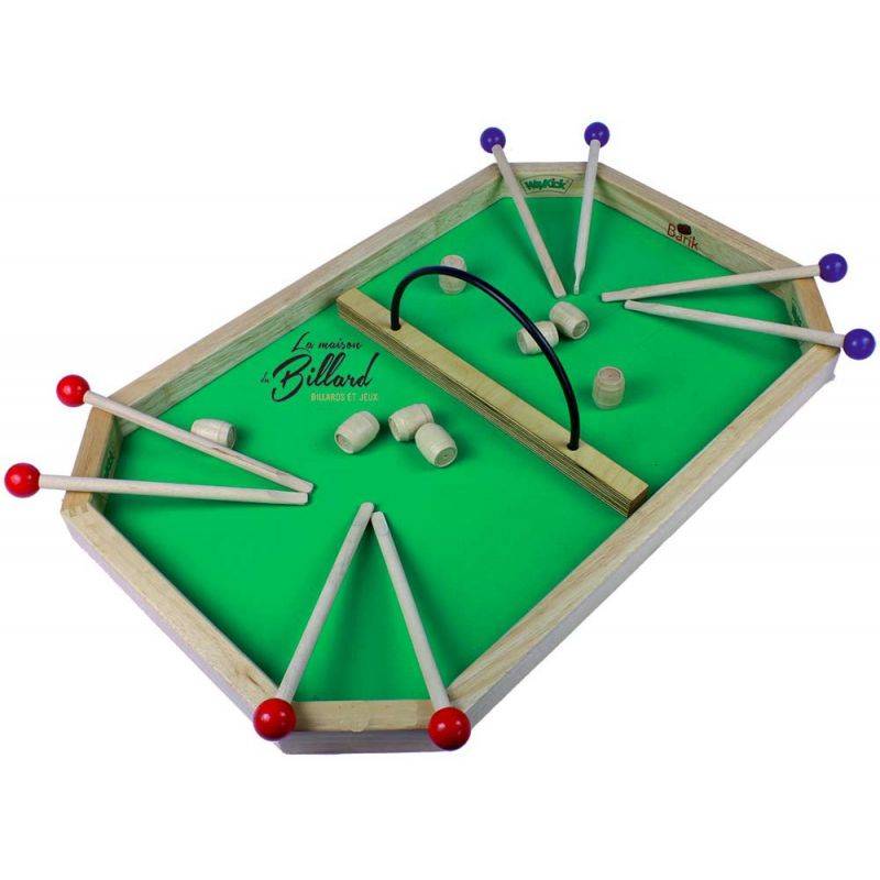 Règle du jeu : Le but est de préserver son camp et d’envoyer la bille chez les adversaires en la soufflant avec la poire. Chaque bille logée compte un point perdant au joueur qui l’a reçue. Celui-ci lance alors la bille sur le jeu et la partie continue. Le marqueur comptabilise les points perdants. Le gagnant est celui qui aura engrangé le moins de points.