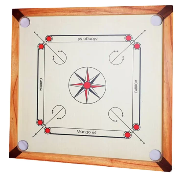 Règle du jeu : Joué à 2 ou à 4 par équipe de 2, le carrom nous propose d’être le premier à rentrer les 9 pions